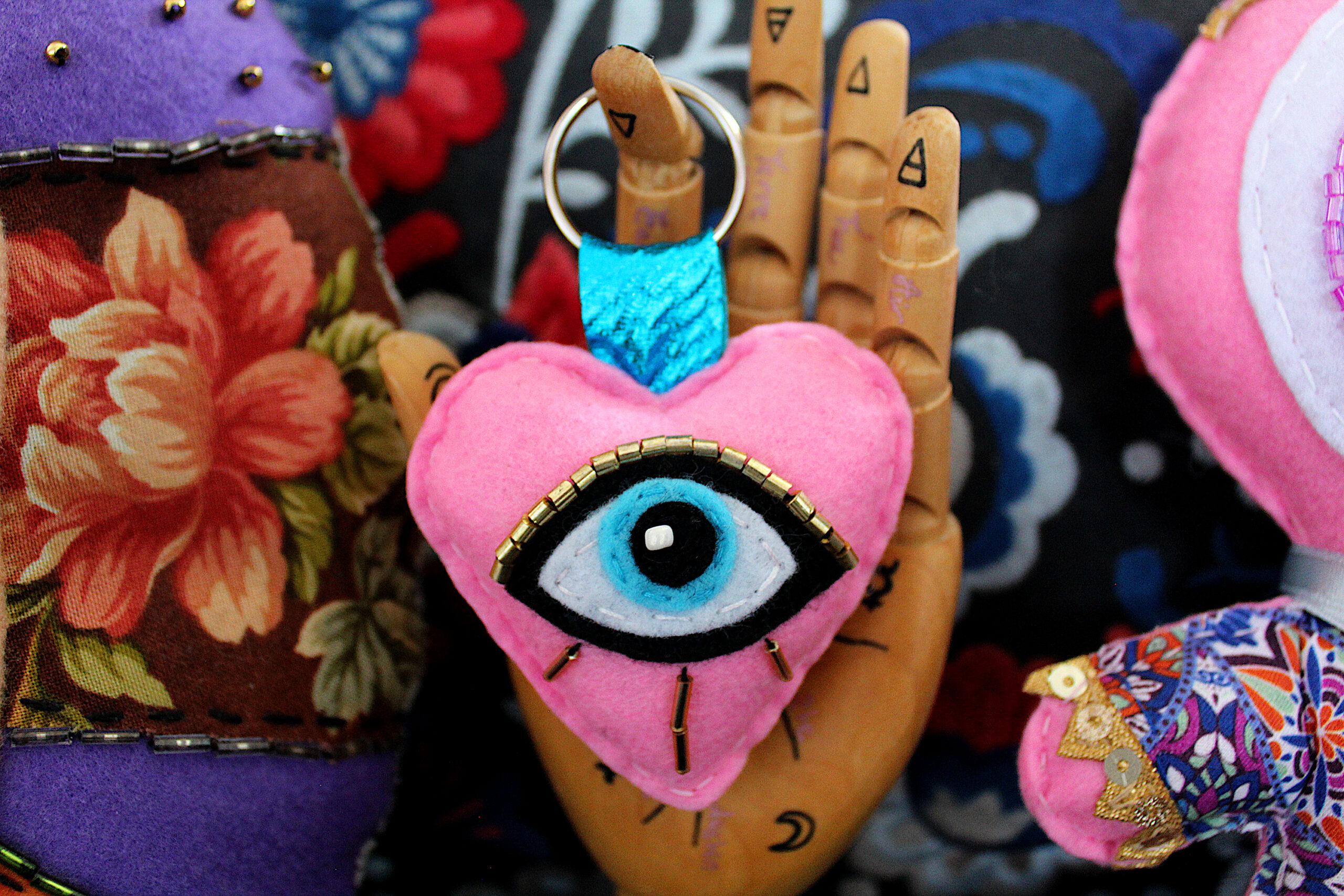 • Rose Féminin Sacré : Le cœur rose a des énergies féminines car le rose est une couleur douce et rassurante comme le serait l’énergie d’une maman. Un œil mystique est niché au milieu du cœur.