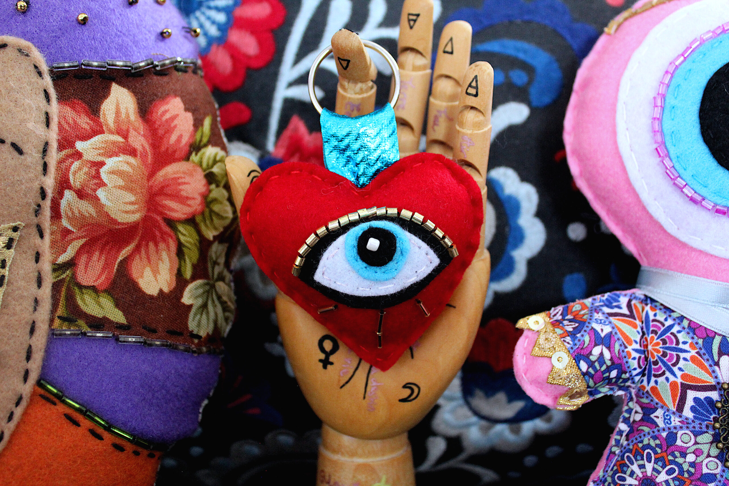 • Rouge Masculin Sacré : Le cœur rouge a des énergies masculines de part sa couleur qui incarne l’action, attribuée au masculin sacré. Un œil mystique est niché au milieu du cœur.