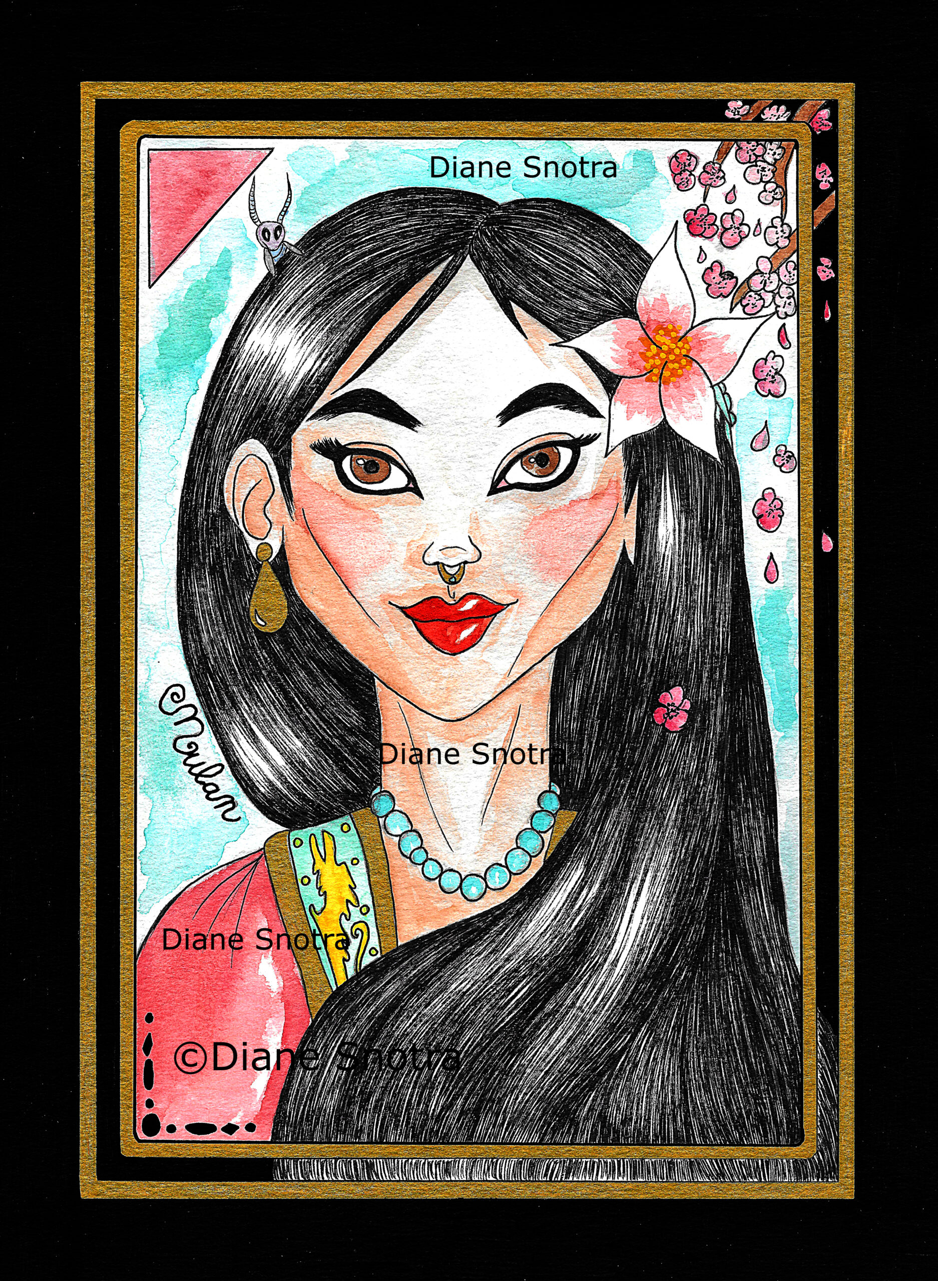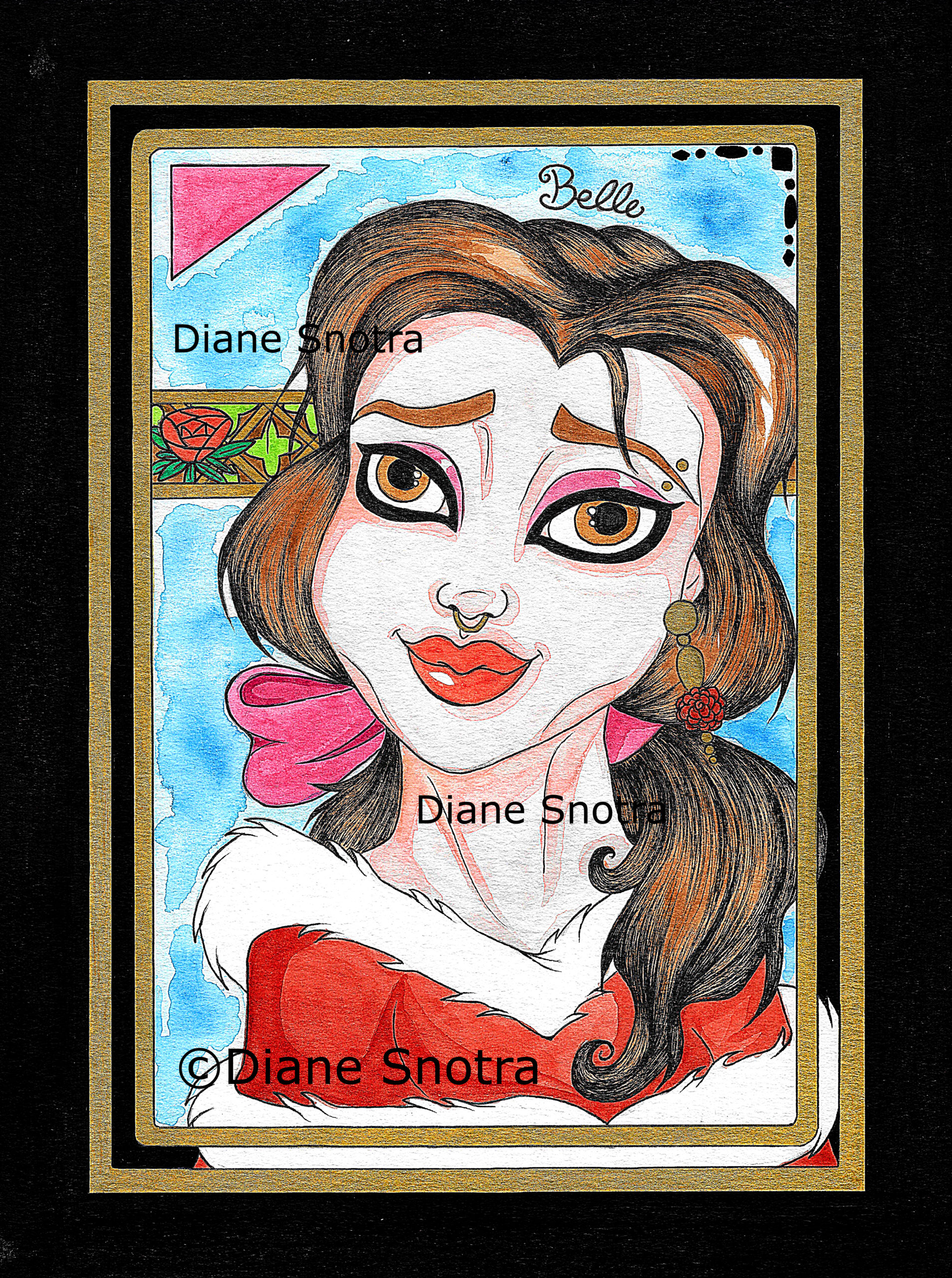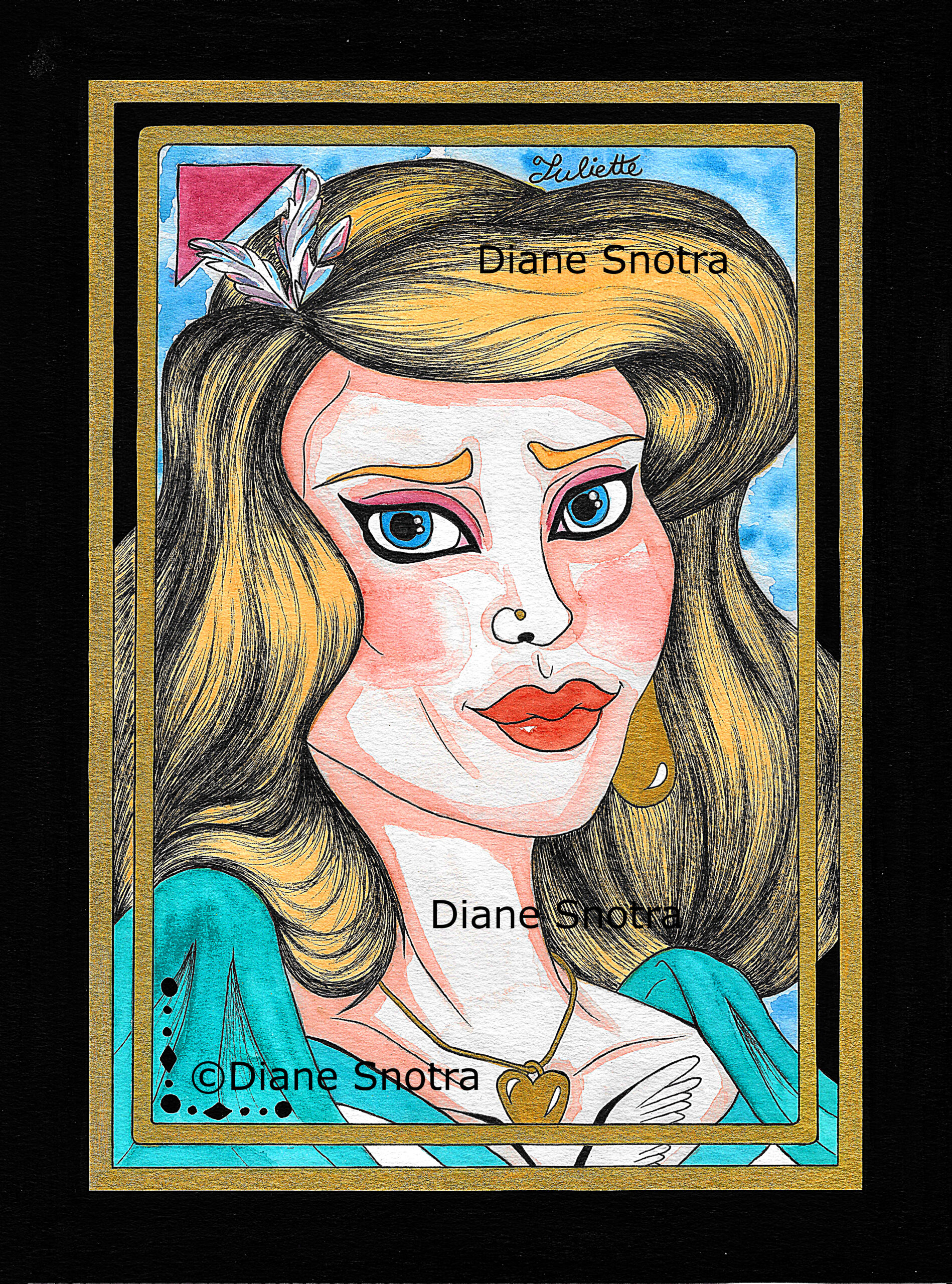 Impressions aux formats A4 ou carte postale au choix de la série “Héroïnes de films animés“ de Diane, la créatrice des Locket Voodies.